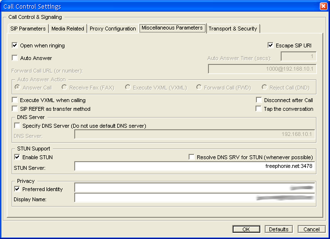 Allez dans Configuration / Call Control Settings à l'aide de Control+K et paramétrez le premier écran comme suit :