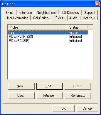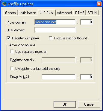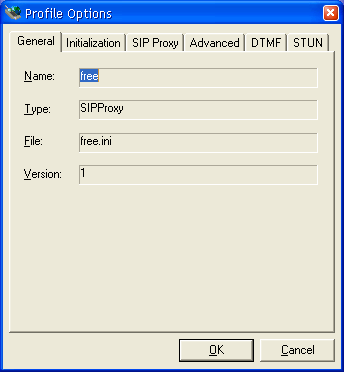 Dans le menu options, aller sur 'Profils'. Créer en un nouveau de type 'Sip Proxy', nommez le (ici, Free) et éditez le.