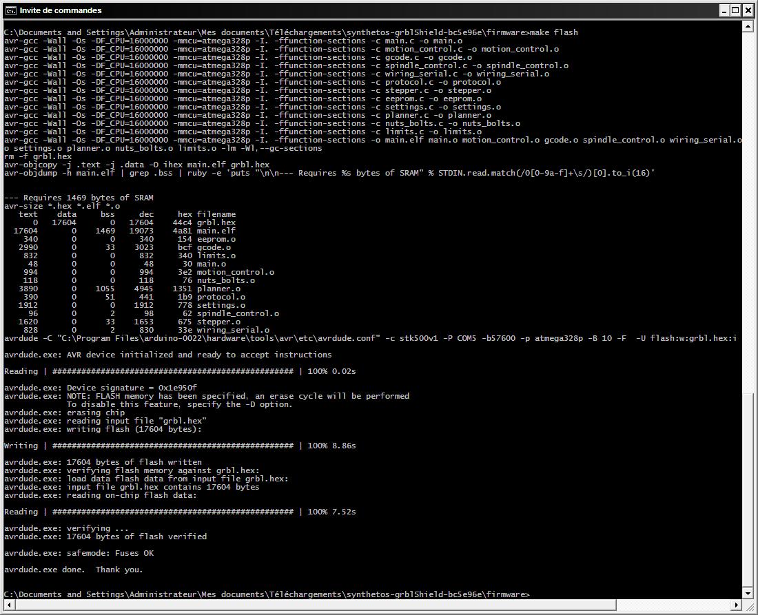 Le micrologiciel que nous allons envoyer sur l'Arduino est dans le sous répertoire synthetos-grblShield-bc5e96e/firmware . Nous allons procéder à quelques modifications / configurations.