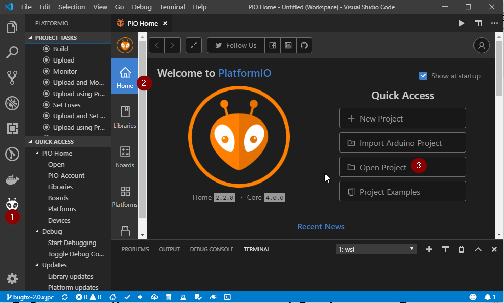 - Après rechargement, Plaformio installera "PlatformioCore" (compilateur, etc..)