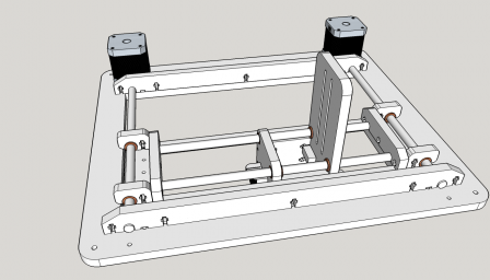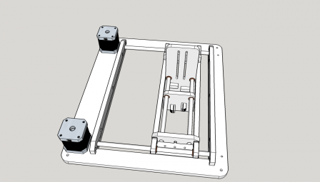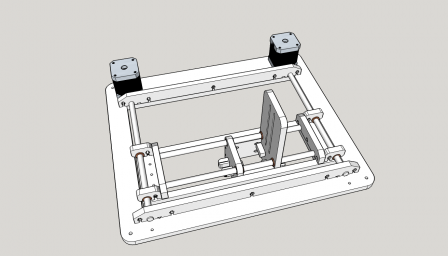 En voici les : plans Sketchup et quelques visuels. Les courroies et poulies ne sont pas représentées, mais sont du standard des imprimantes 3D Prusa I3. Les moteurs sont des Nema17 de 1.2 A.